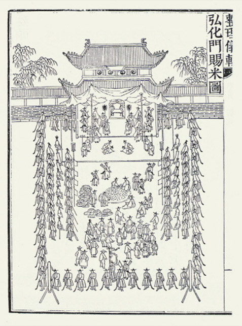 탕평 군주 영조와 정조는 백성들과의 만남 장소로 창경궁의 정문 홍화문(弘化門)을 종종 활용했다. 대표적으로 영조 26년(1750) 균역법 시행을 앞두고 영조는 홍화문 앞에서 한양의 백성들과 군사들 50여 명을 만나 군역 개편 방안에 대해 의견을 묻는 장면을 연출하였다. 정조 19년(1795) 정조는 어머니 혜경궁 홍씨의 회갑을 기념하여 창덕궁 홍화문에 나아가 한양의 빈민들에게 쌀을 나눠주는 행사를 열었고, 이 장면은 『원행을묘정리의궤(園幸乙卯整理儀軌)』에 수록된 ?홍화문사미도(弘化門賜米圖)?로 남아 있다.