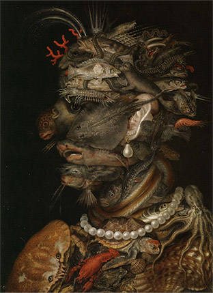 도10. Giuseppe Arcimboldo, The Water, 1566. oil on wood, 67 x 51 cm, Kunsthistorisches Museum, Vienna, Austria