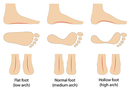 평발(저아치)이나 요족(고아치)을 가진 사람들은 보행 시 충격 흡수가 제대로 이뤄지지 않아 발, 무릎, 골반, 허리에 연쇄적으로 무리를 줄 수 있습니다. 요즘은 발 모양을 보완할 수 있는 족형별 맞춤 신발이나 깔창이 있으므로, 반드시 본인 발에 맞는 제품을 선택해야 부상 위험을 줄일 수 있습니다.