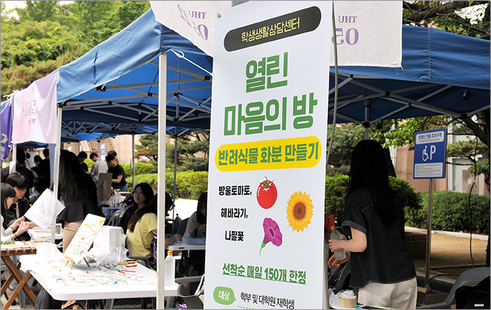 여기에 한 걸음 더 나아가서, 중간고사 기간에는 ‘천원의 저녁밥’ 행사도 진행했습니다. 시험공부로 늦게까지 남는 학생들이 많은데, 그 친구들이 따뜻한 한 끼를 먹으며 힘을 낼 수 있도록 준비했죠. 학생들의 반응이 정말 뜨거웠습니다. 식당 문이 열리기 전부터 줄이 길게 늘어설 정도였으니까요. 이 행사는 학생회의 제안으로 시작해서 학생지원팀과 생활협동조합의 지원으로 운영한 건데요, 서울 소재 사립대학 중에서는 저희가 처음이 아니었나 싶습니다.