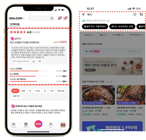 ▲ SSG닷컴의 GPT 기반 리뷰 (왼쪽),