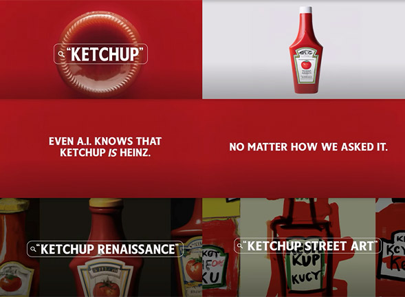 생성형 AI를 기반으로 한 광고의 제작 역시 빼놓을 수 없는 영역이다. 과거에는 광고가 온전히 인간의 창의력에 의존했다면, 이제는 AI가 크리에이티브 과정의 동반자로 자리잡았다. 광고 내에서 성공적으로 AI 기술을 도입한 브랜드로는 케쳡 브랜드 Heinz 가 있다. Heinz 는 소비자들의 마음속에 “케쳡=Heinz” 의 공식을 크리에이티브하게 담아내기 위해 “It has to be Heinz” 슬로건을 중심으로 캠페인을 집행해왔다. Heinz 는 2022년 오픈AI의 DALL·E 2를 활용하여 캠페인을 집행하는데, 해당 캠페인이 상당히 인상적이다.